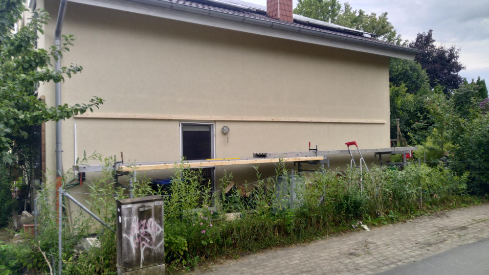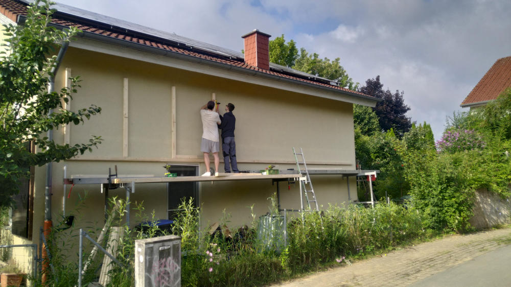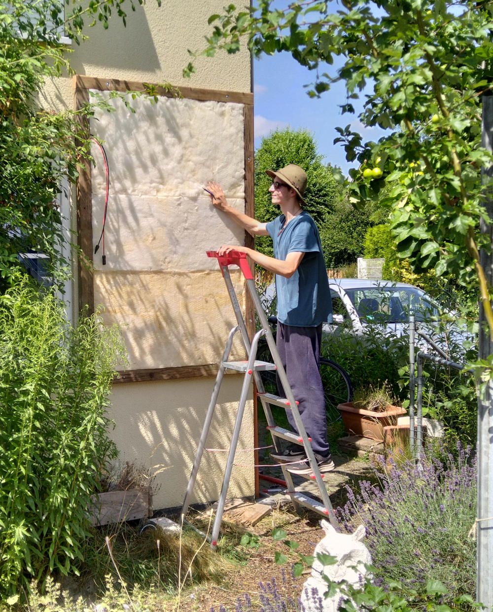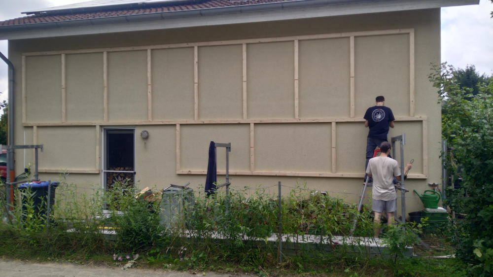 Die Fassade wird mit 8cm Mineralwolle isoliert und